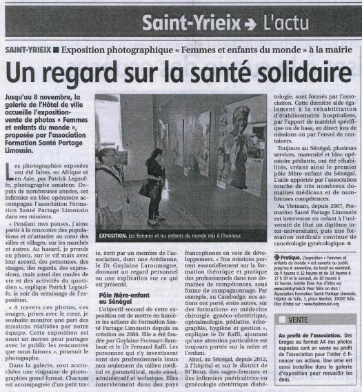 Cette exposition, présentée à la galerie de l’hôtel de Ville de Saint-Yrieix jusqu’au 8 novembre, a pour objectifs de présenter les actions de l’association, de sensibiliser le grand public et de recueillir des dons en vue des prochaines campagnes.